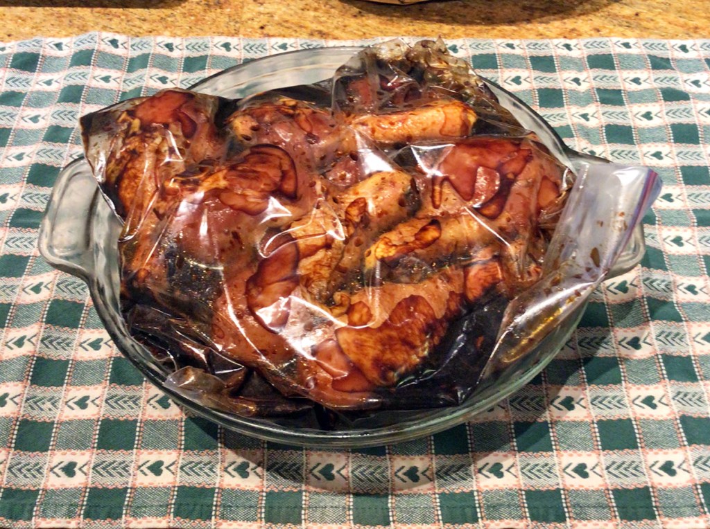 Pour the mixture over the chicken. Seal the bag, pressing out as much air as possible. Place the sealed bag in a pie plate or bowl (in case of leakage) and refrigerate from 4 hours to overnight, turning the bag occasionally.